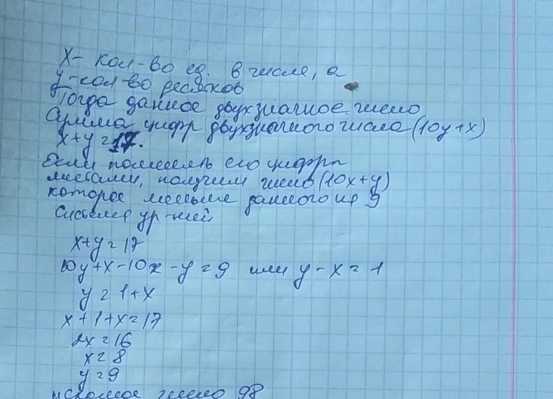 Сумма цифр двузначного числа равна 17,если поменять его цифры местами,то получим число,которое меньше данного на 9.