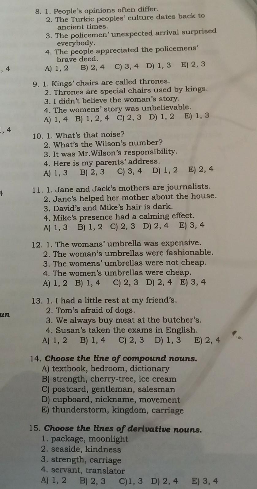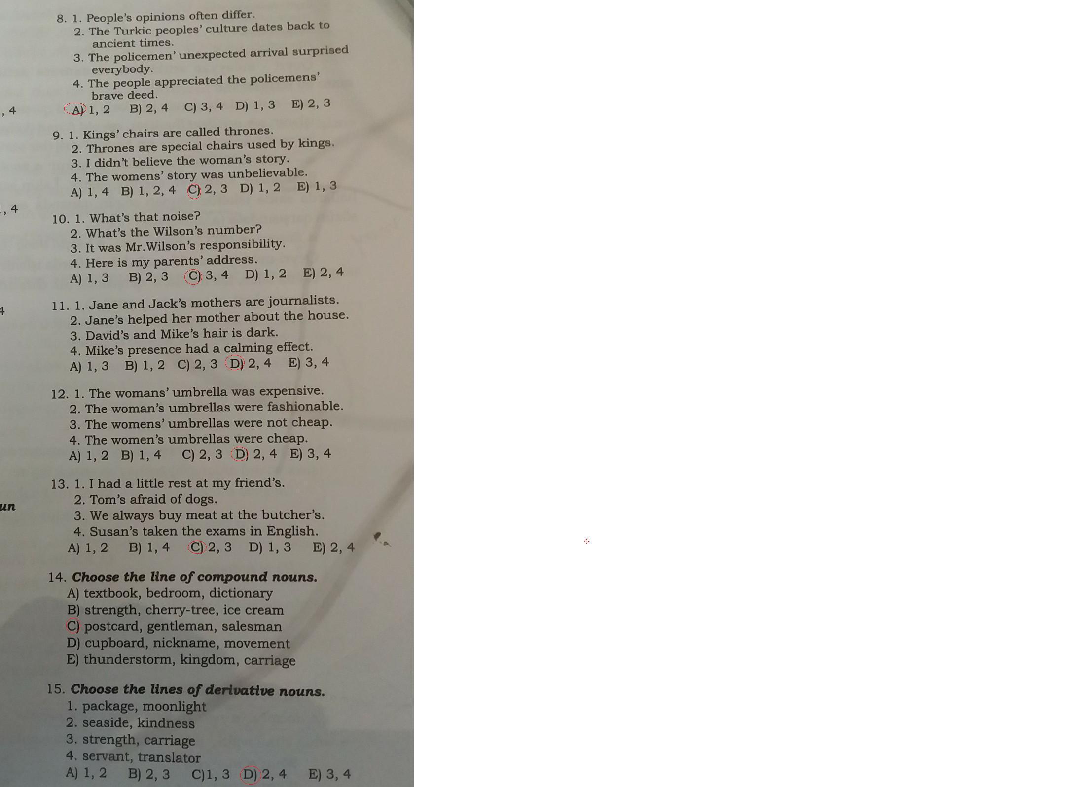помогите пожалуйста.Там напичано написано:Choose the correct sentences with the noun in the Possessive Case.