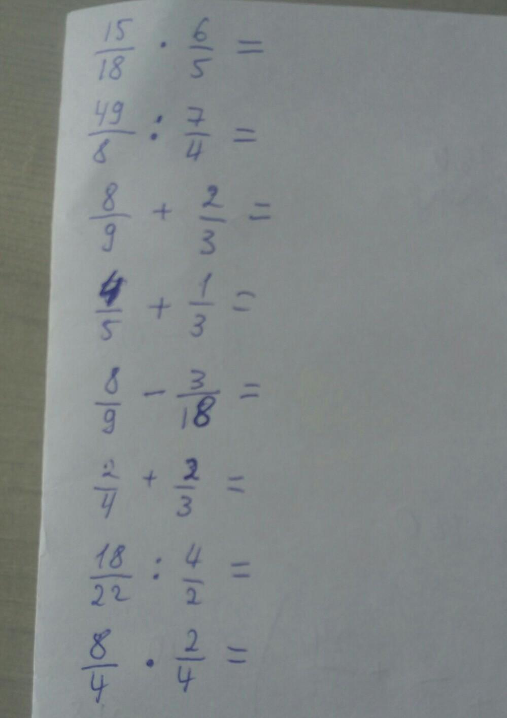 7) 18/22 : 4/2= 18/22 * 2/4 = 9/22