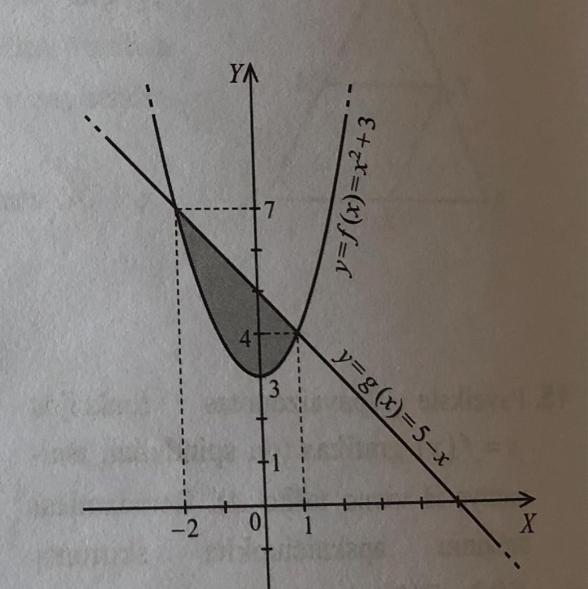 2) Площадь - интеграл разности функций. Прямая выше параболы.