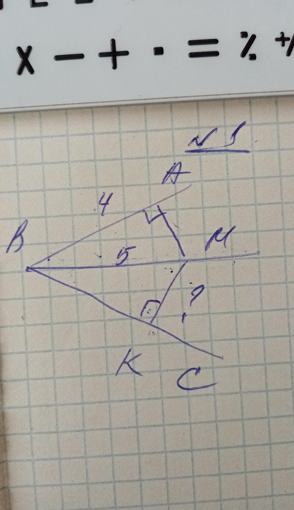 дано: ВМ= 5 см, ВА= 4 см. угол ВАМ= углу ВКМ= 90°. Найти: КМ.