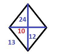 S = D*d/2 = 24*10/2 = 240/2 = 120 см² - площадь - ответ.