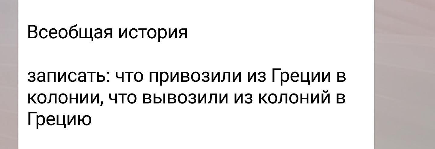 привозили:зерно,скот, мёд,рабов. Вывозили:оружие,ткани,вазы,мраморные статуи