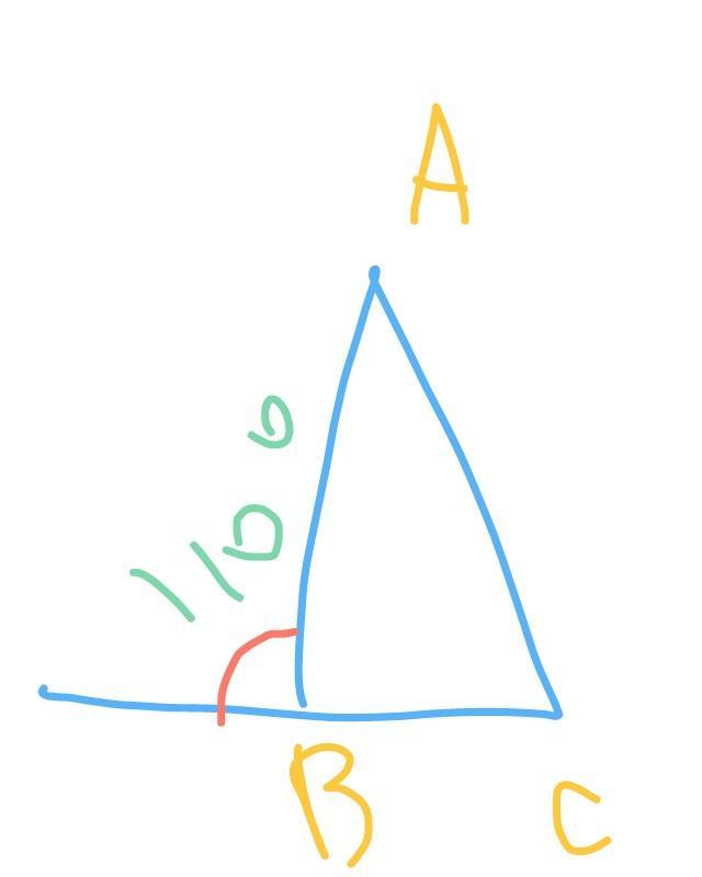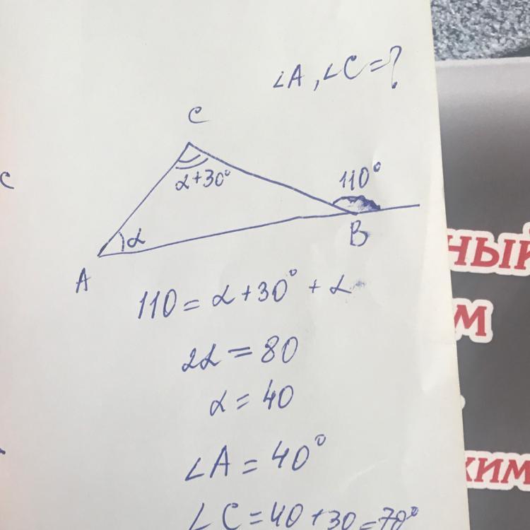Так как внешний угол при вершине В равен 110 ° , углы А+С=110°.