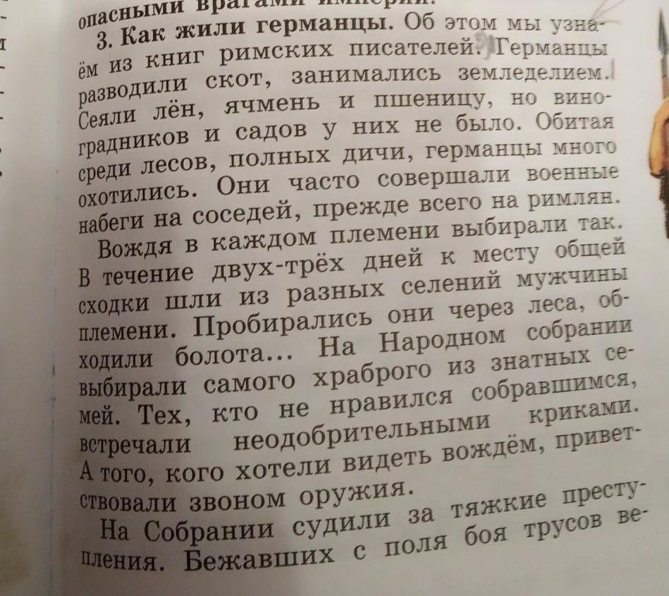 1)Труд немцев 2)Выбирание у немцев вождя3) как немцы разбирались с трусом.