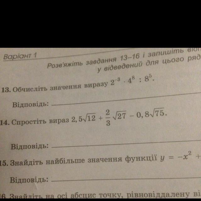 13). 2^-3*( 2^2)8/( 2^3)5= 2^-3*2^16/2^15=2^-2=1/4