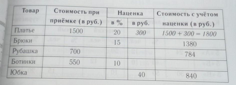 В магазине сделали наценку на полученный товар. Заполните таблицу используя известные данные.