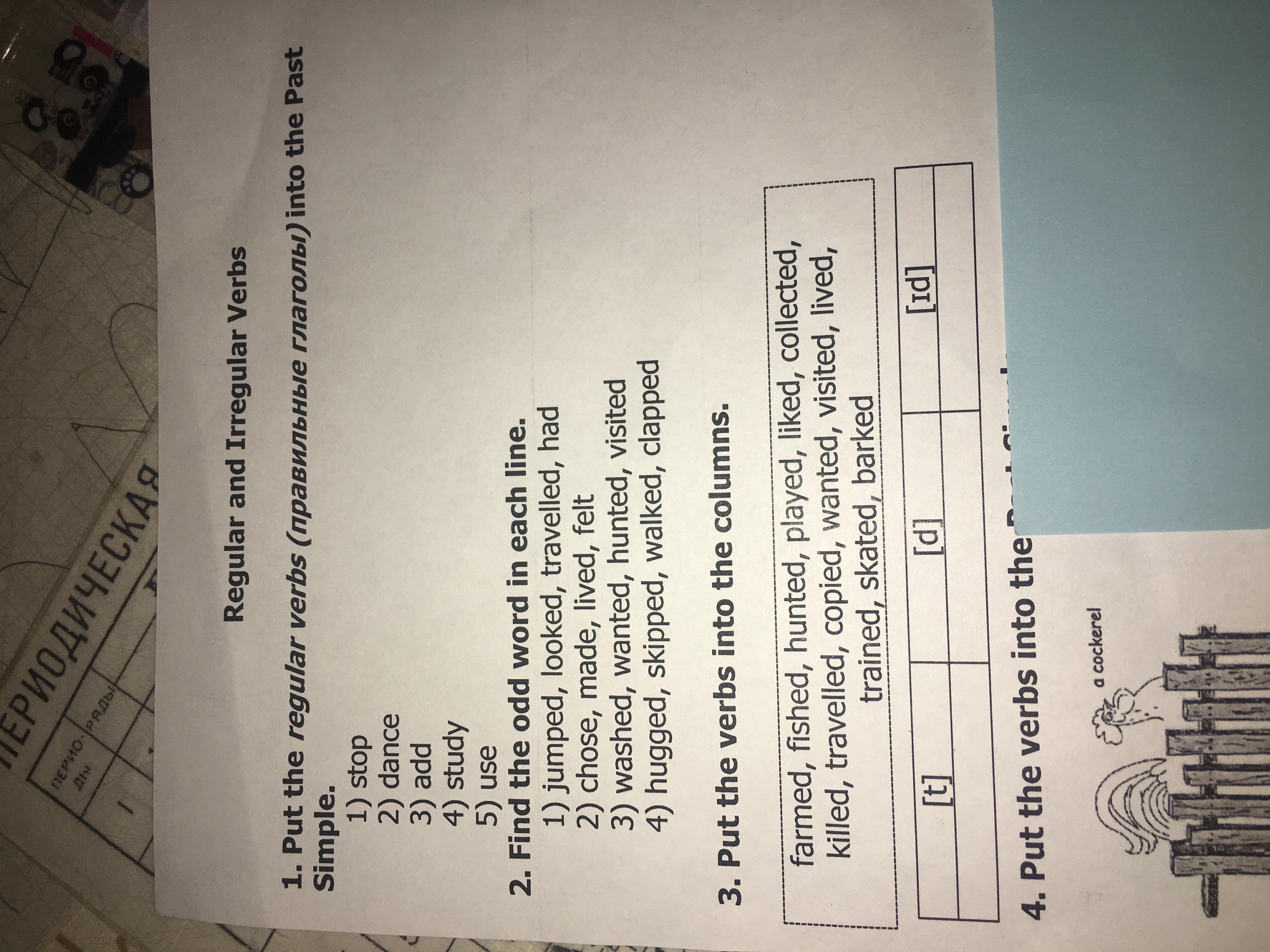 2 колонка: farmed, played, killed, travelled, lived, trained.