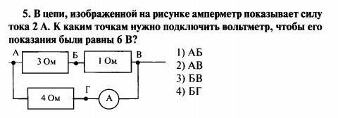 Вольтметр нужно подключить к точкам АБ, ответ 1)