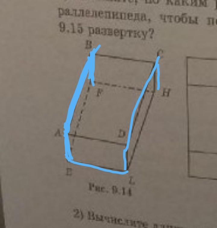 Изготовьте модель прямоугольного параллелепипеда (рис. 9. 14) длиной 7 см, шириной 5 см, высотой 2 см. 1) Запишите, по каким ребрам можно разрезать модель по- параллелепипеда, чтобы получить изображенную на рисунке 9.15 развертку?Вычислите длину ломаной разреза.