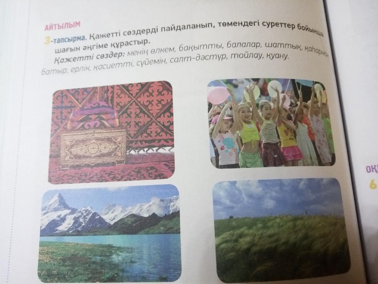 Объяснение:менің өлкемәдемі, біз бақыттың не екенін білеміз біз баламыз бірақ бәрін түсінеміз