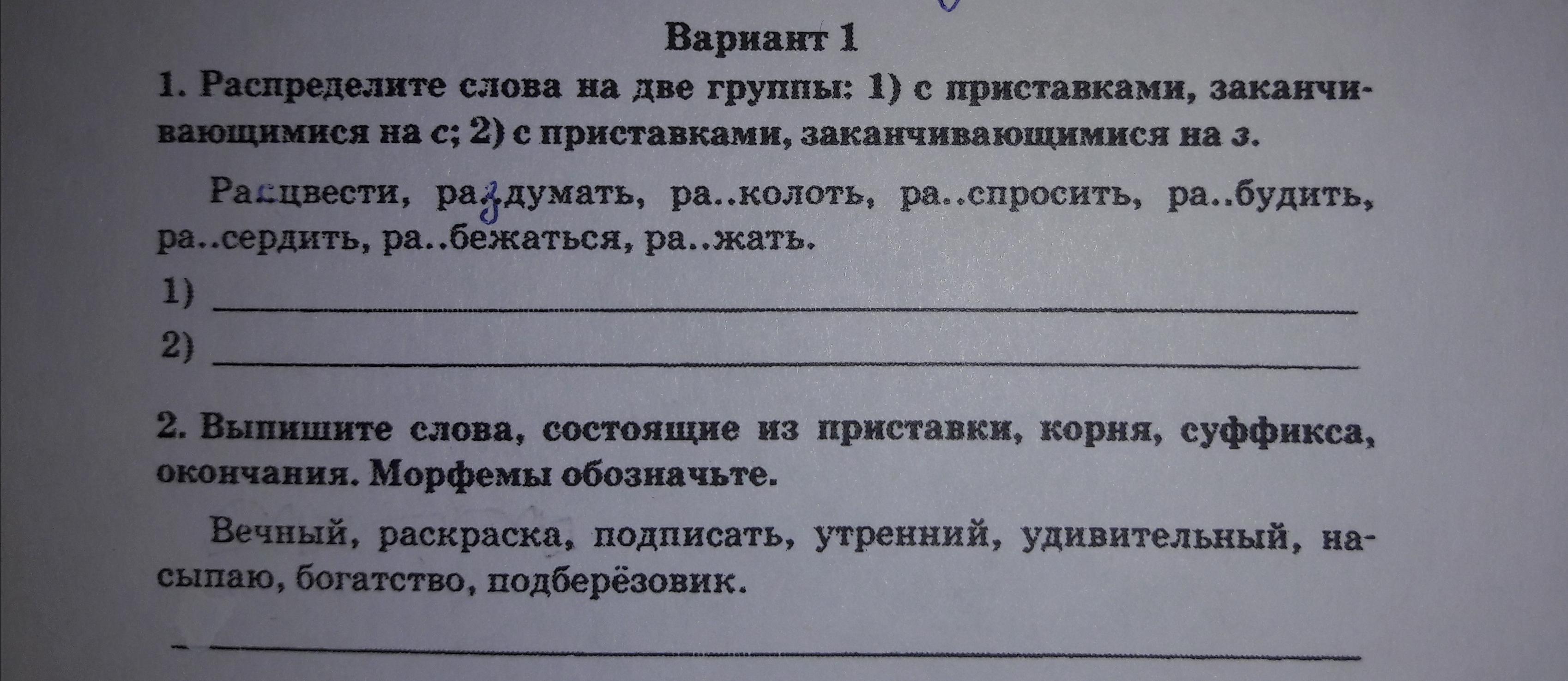 1)расцвести,расколоть,расспросить,рассердить2)раздумать,разбудить,разбежаться,разжать