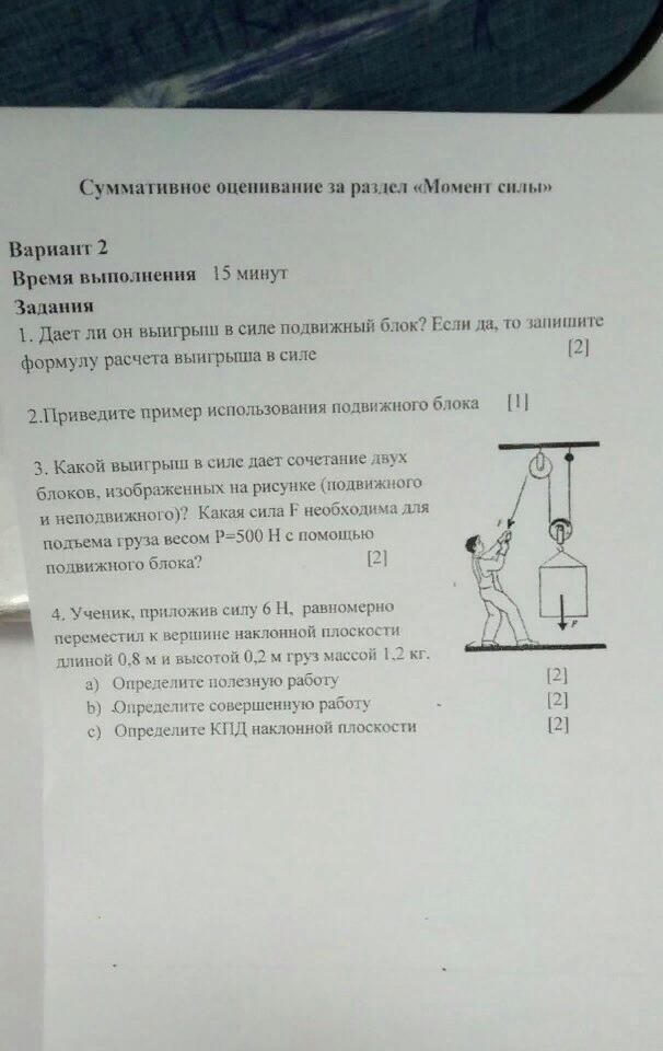 Какой выигрыш дает сочетание двух блоков,изображенных на рисунке(подвижного или неподвижного?) Какая сила F необходима для подъема груза весом P=500H с помощью подвижного блока?