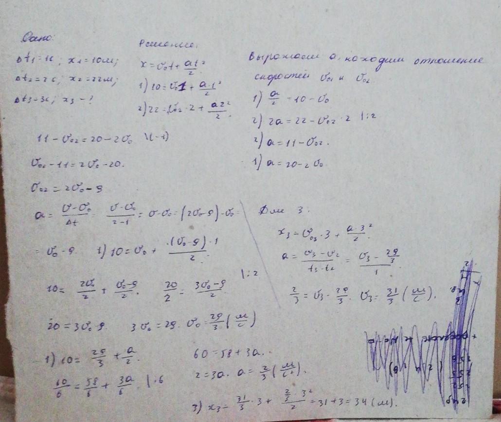Дельта v=v2-v1=22-10=12м. V3=v2+дельта v=22+12=34м.