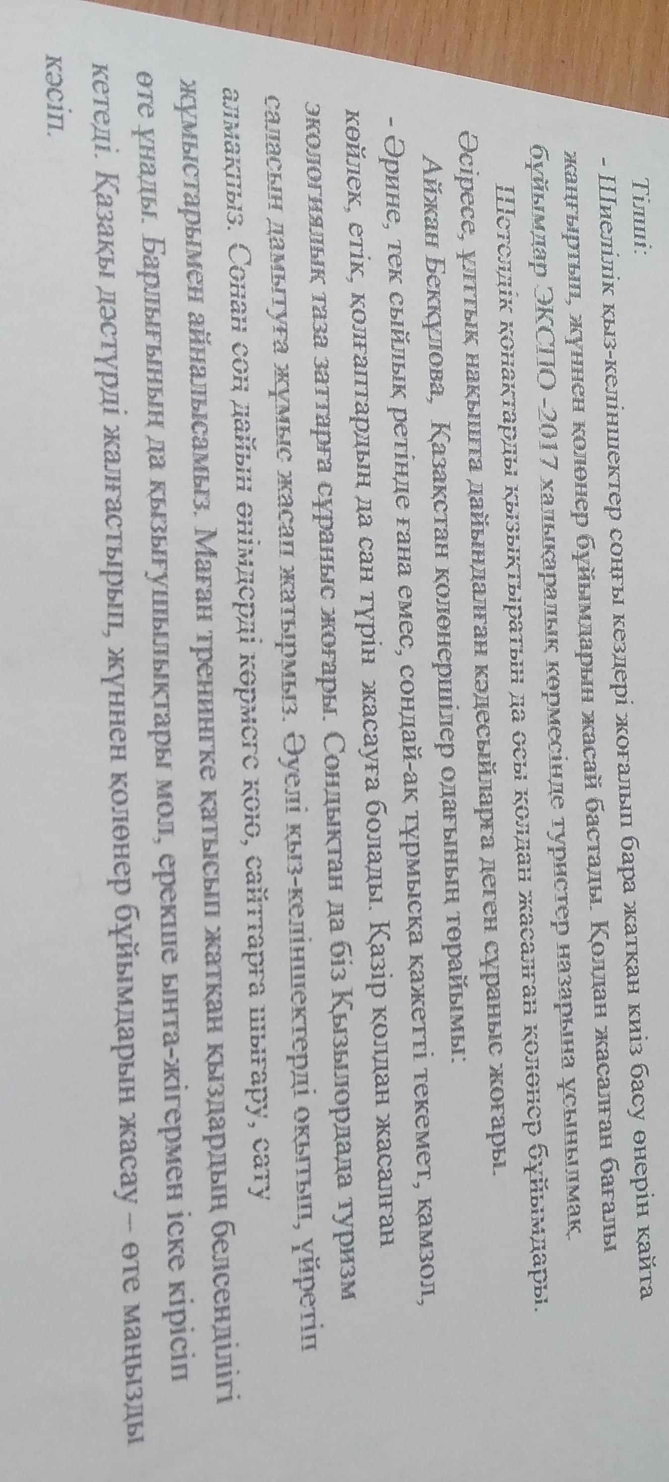 1.ЭКСПО-2017 көрмесінде шетелдік қонақтарға қандай бұйымдар ұнады?