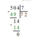 504 разделить на 7 будет 72