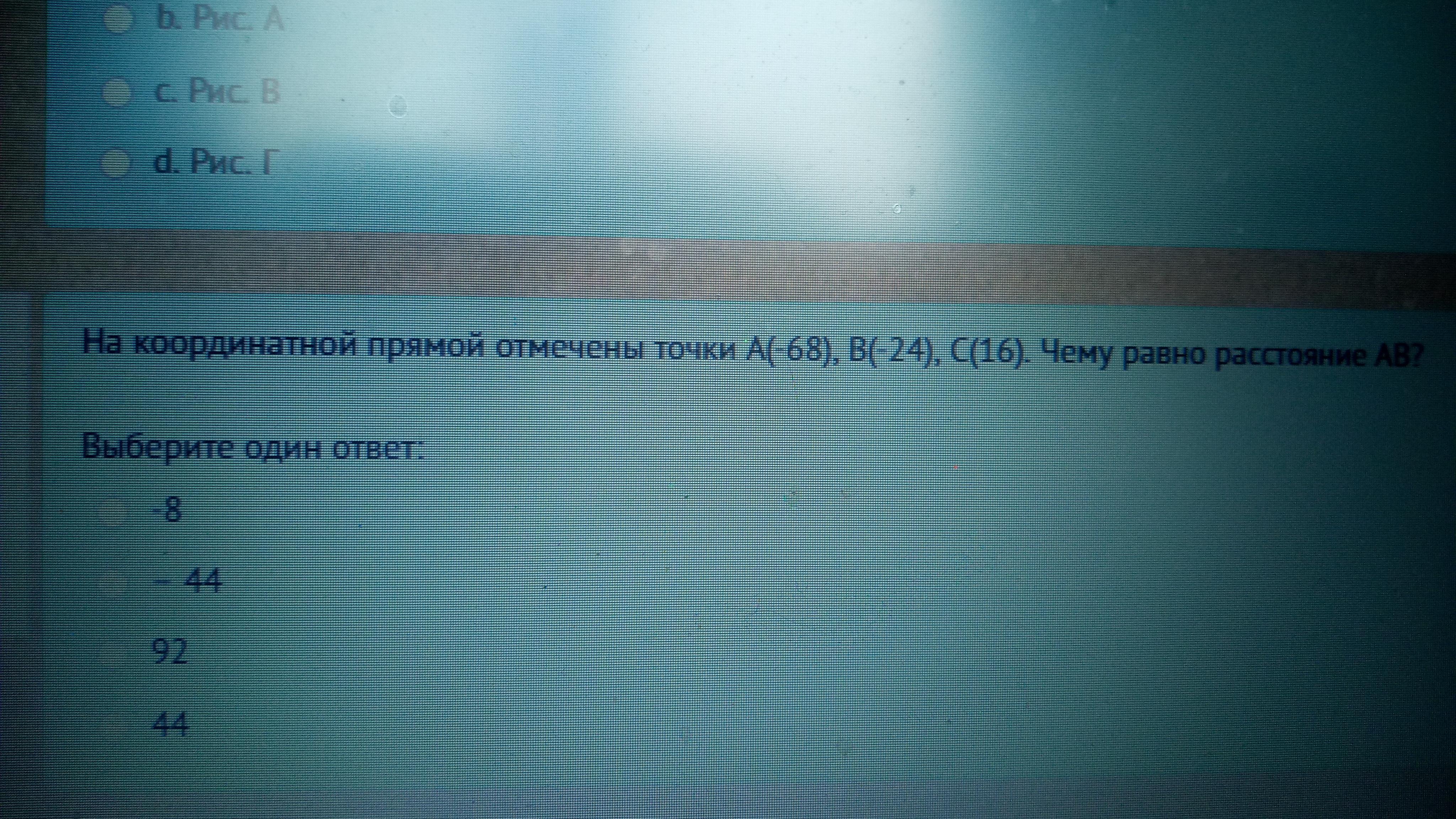На координатной прямой отмечены точки А (-68),В (-24),С (16) Чему равно расстояние АВ?