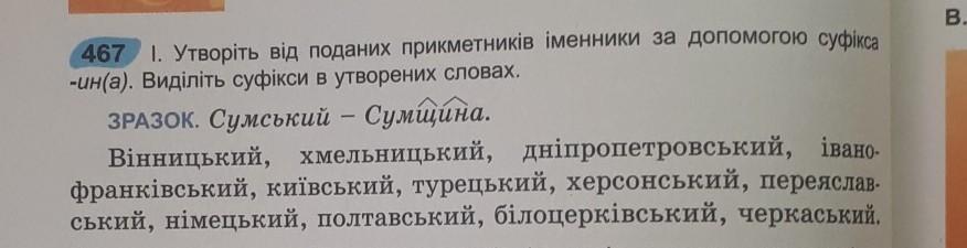 Вінниччина (суфікс чч і ин), Хмельниччина (суфікс чч і ин), Дніпропетровщина (суфікс щ і ин), Івано-Франківщина (суфікс щ і ин), Київщина (суфікс щ і ин), Туреччина (суфікс чч і ин), Херсонщина (суфікс щ і ин), Переяславщина (суфікс щ і ин), Німеччина (суфікс чч і ин), Полтавщина (суфікс щ і ин), Білоцерківщина (суфікс щ і ин), Черкащина (суфікс щ і ин).