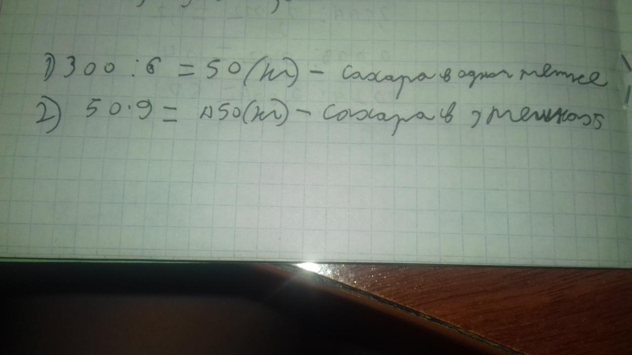 1)300:6=50 кг сахара в одном мешке