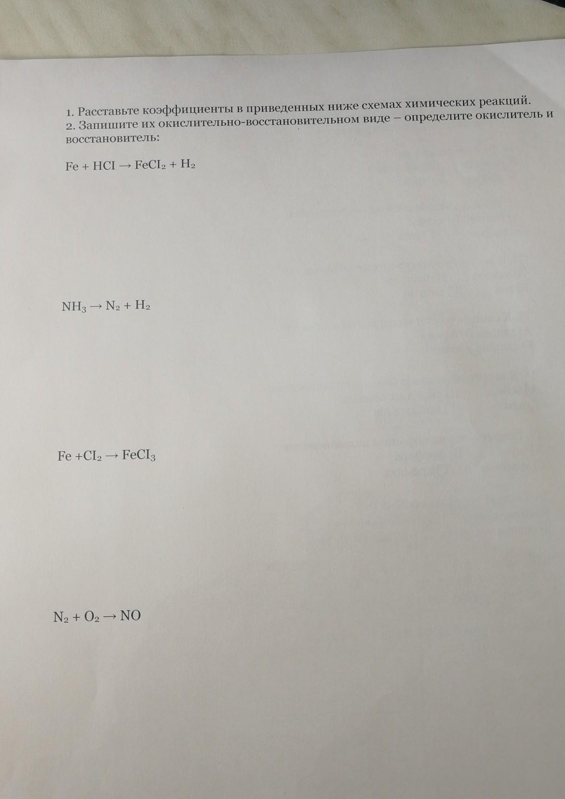 расставьте коэффициенты в приведенных схемах химических реакций. 2.запишите их окислительно восстановительном виде определите окислительно и восстановитель