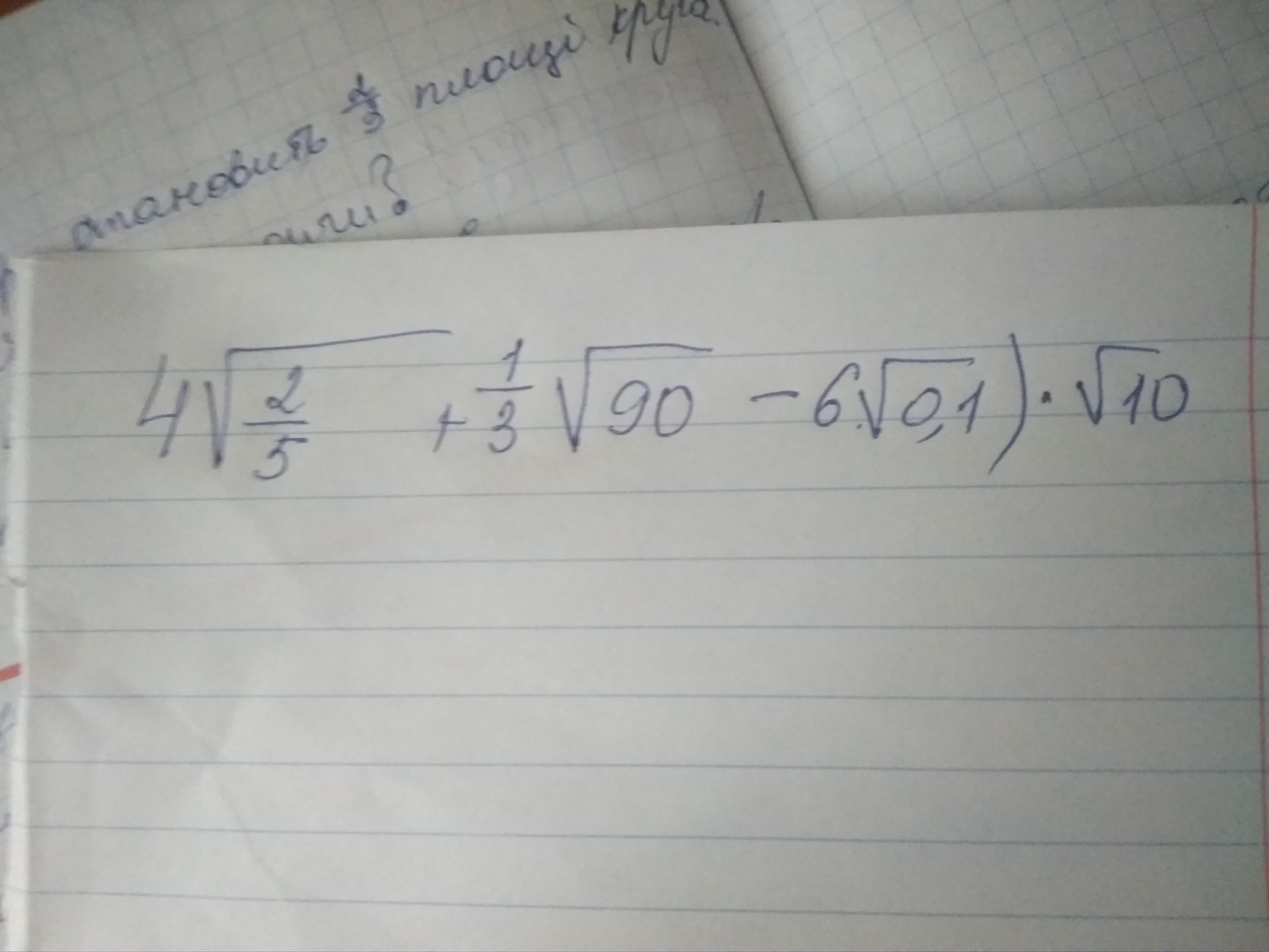 4√(2*10)/5 +1/3√90*10-6√0,1*10= 4√4+1/3√900-6√1= 4*2+1/3*30-6= 8+10-6= 12