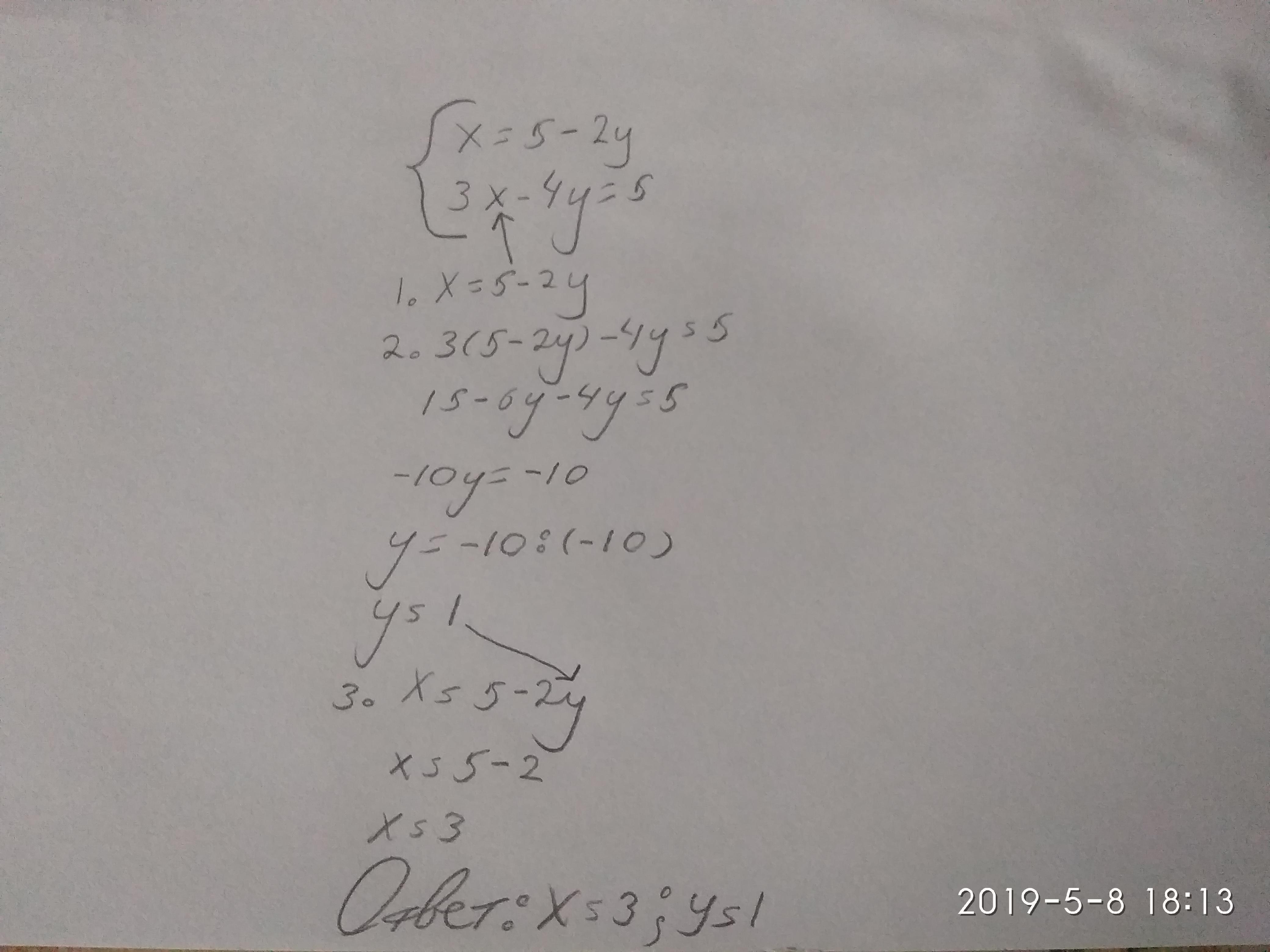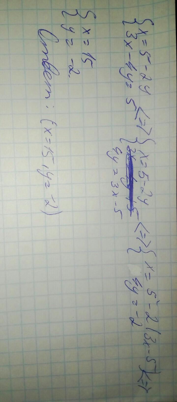 Только у меня вопрос... Там 3·(5-2у)-4у=5. Почему вышло 1? Там разве не · ??? 5-2=3, 3·3=9, 9-5= 4, 4+4 = 8.
