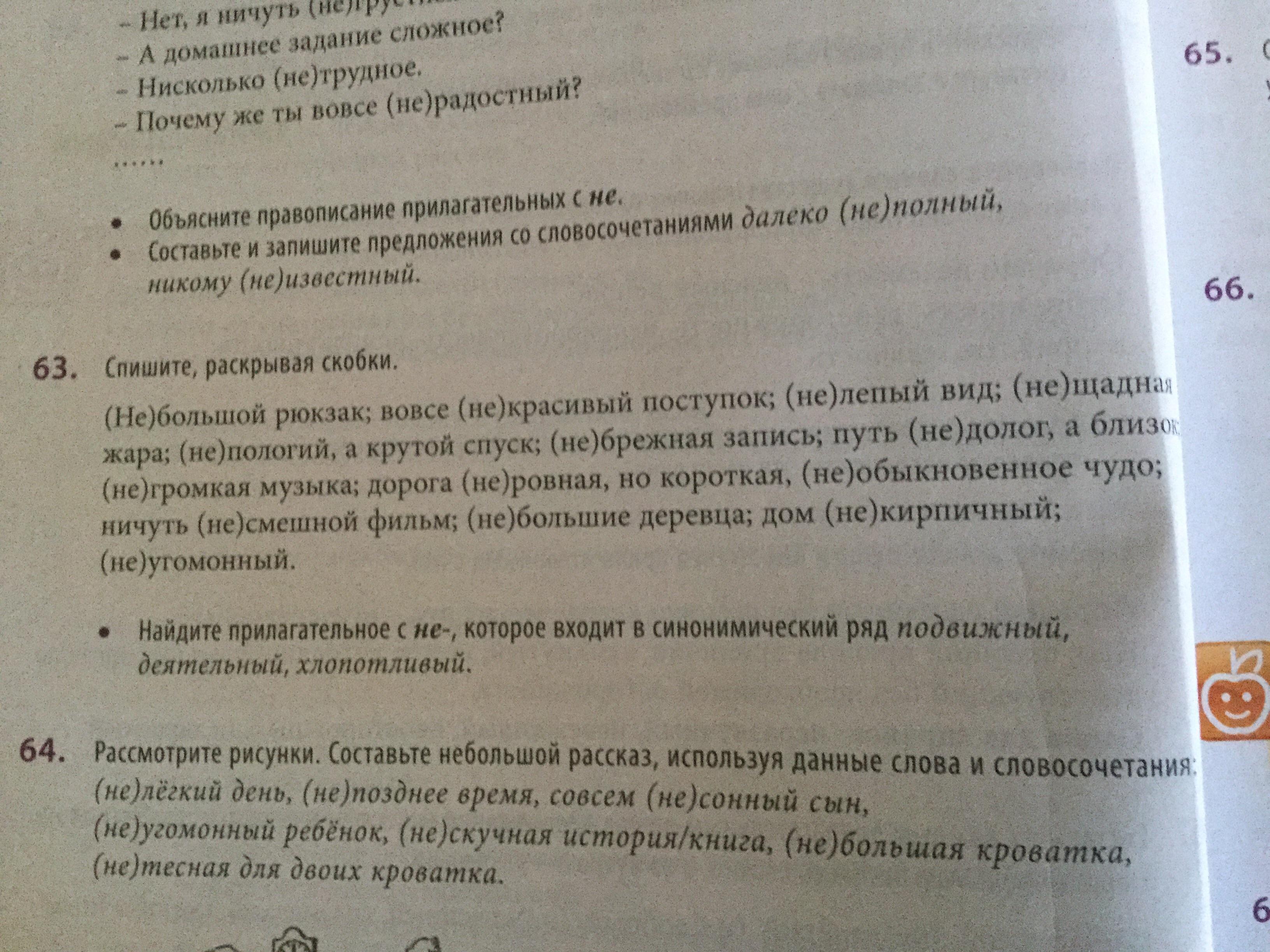 небольшой рюкзак;вовсе не красивый поступок;нелепый вид;нещадная жара;не пологий,а крутой спуск;небрежная запись;путь не долог,а близок;негромкая музыка;дорога неровная,но короткая;необыкновенное чудо;ничуть не смешной фильм;небольшие деревца;дом некирпичный;неугомонны