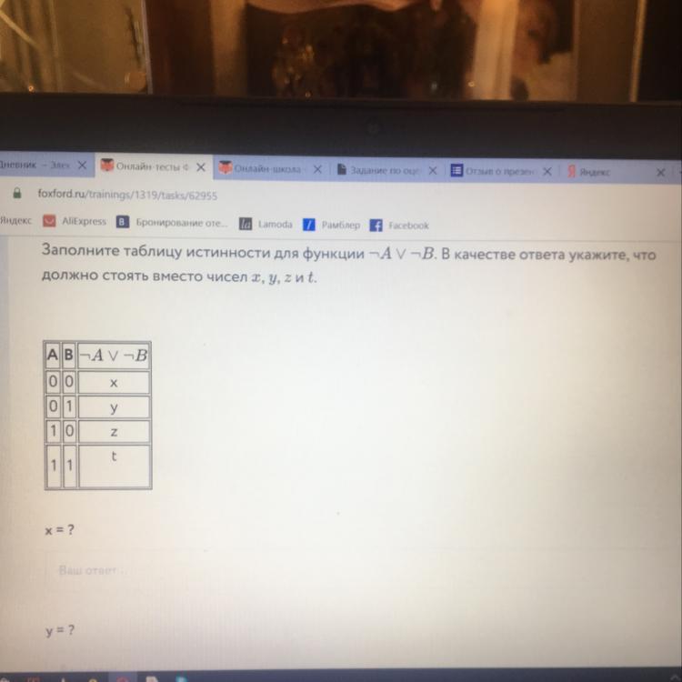 у= ¬0 ∨ ¬1 → 1 ∨ 0 → 1.