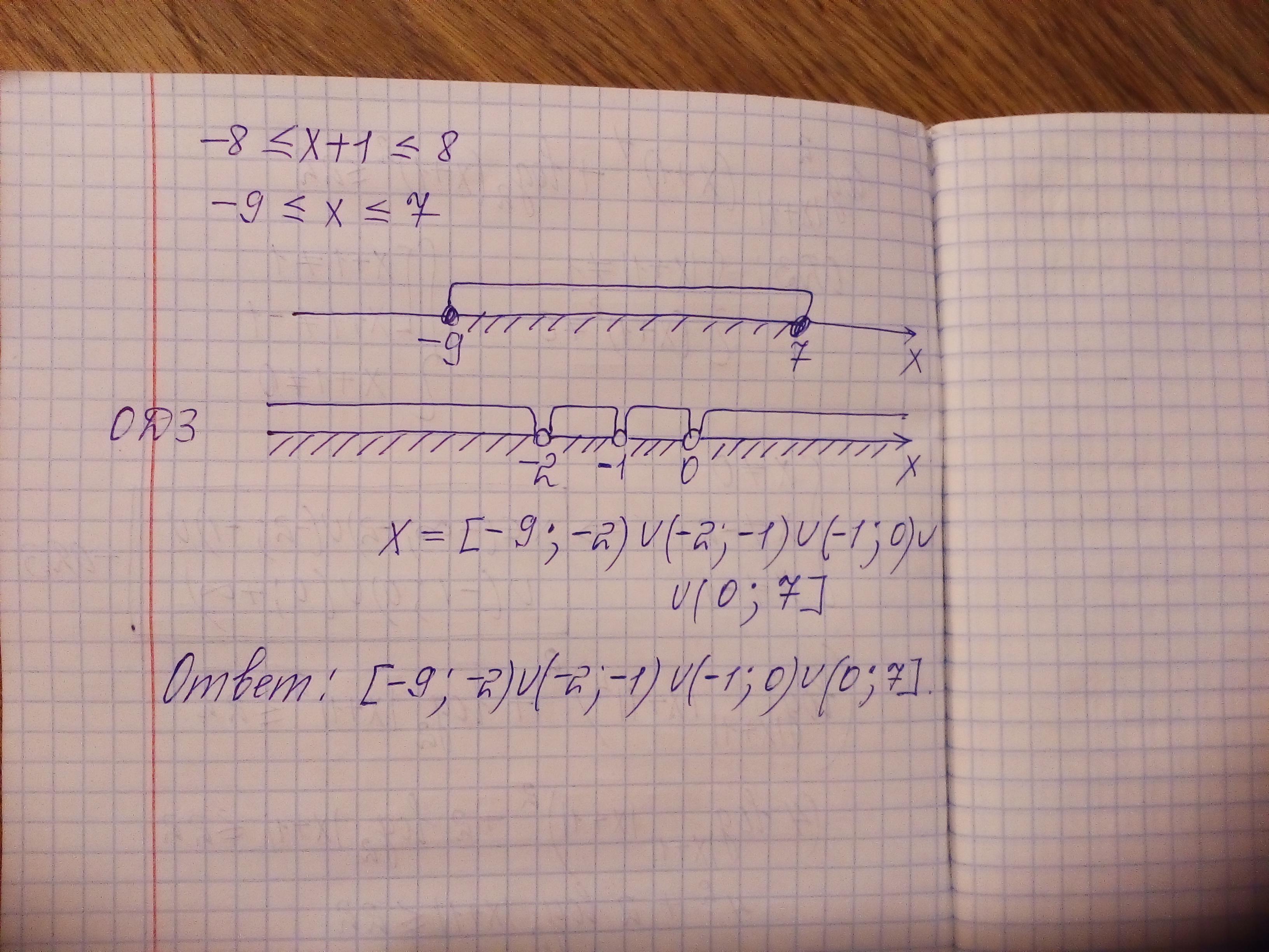 x∈ [-9 -2) U (-2 -1) U (-1 0) U (0 7]