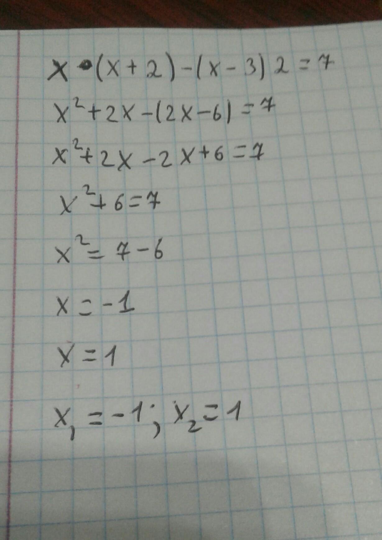 СРОЧНОООО ОЧЕНЬ!!! Помогите пожалуйста! Времени очень мало!! Розв`яжіть рівняння: х( х + 2) - (х - 3)2 = 7 Заранее спасибо!!!