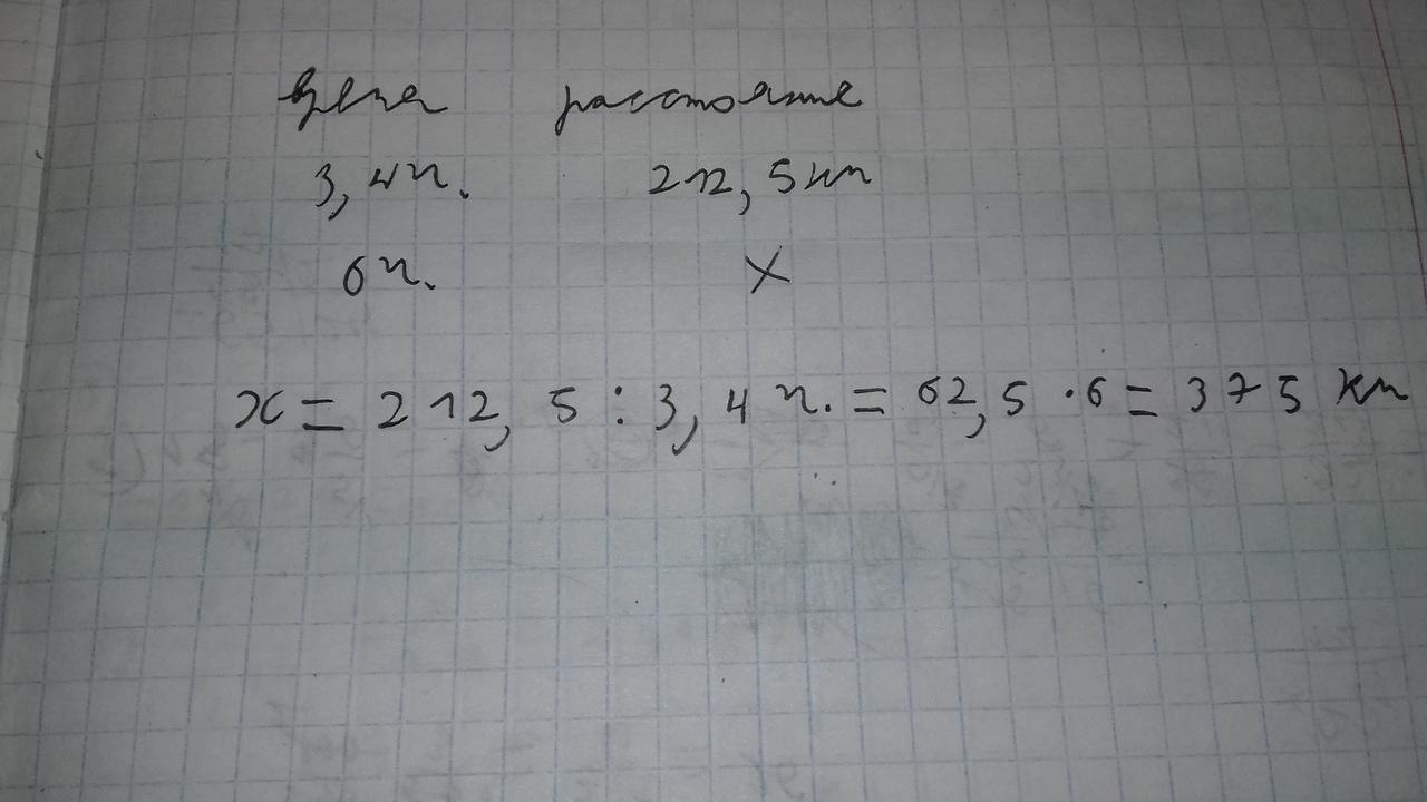 2). За 3,4 часа поезд прошёл 212,5 км . Сколько километров проходит поезд за 6 часов при такой же скорости?