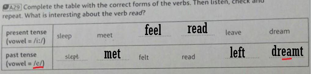 Дополнение: Прошедшая форма dream в данном случае это dreamt, а не dreamed, так как от нас требуют звук /e/