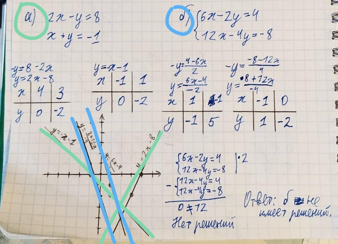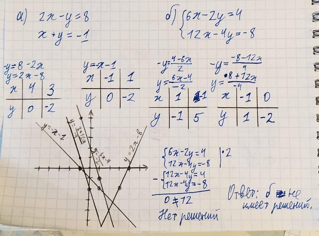 Постройте график каждой системы уравнения , укажите систему которая не имеет решения.