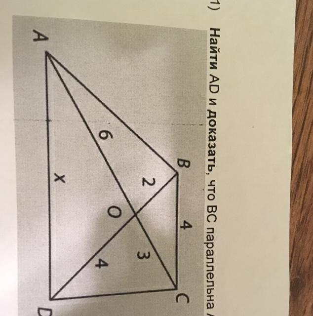 Из подобия треугольников имеем: AD/BC = 2/1 => AD = 8 ед. и