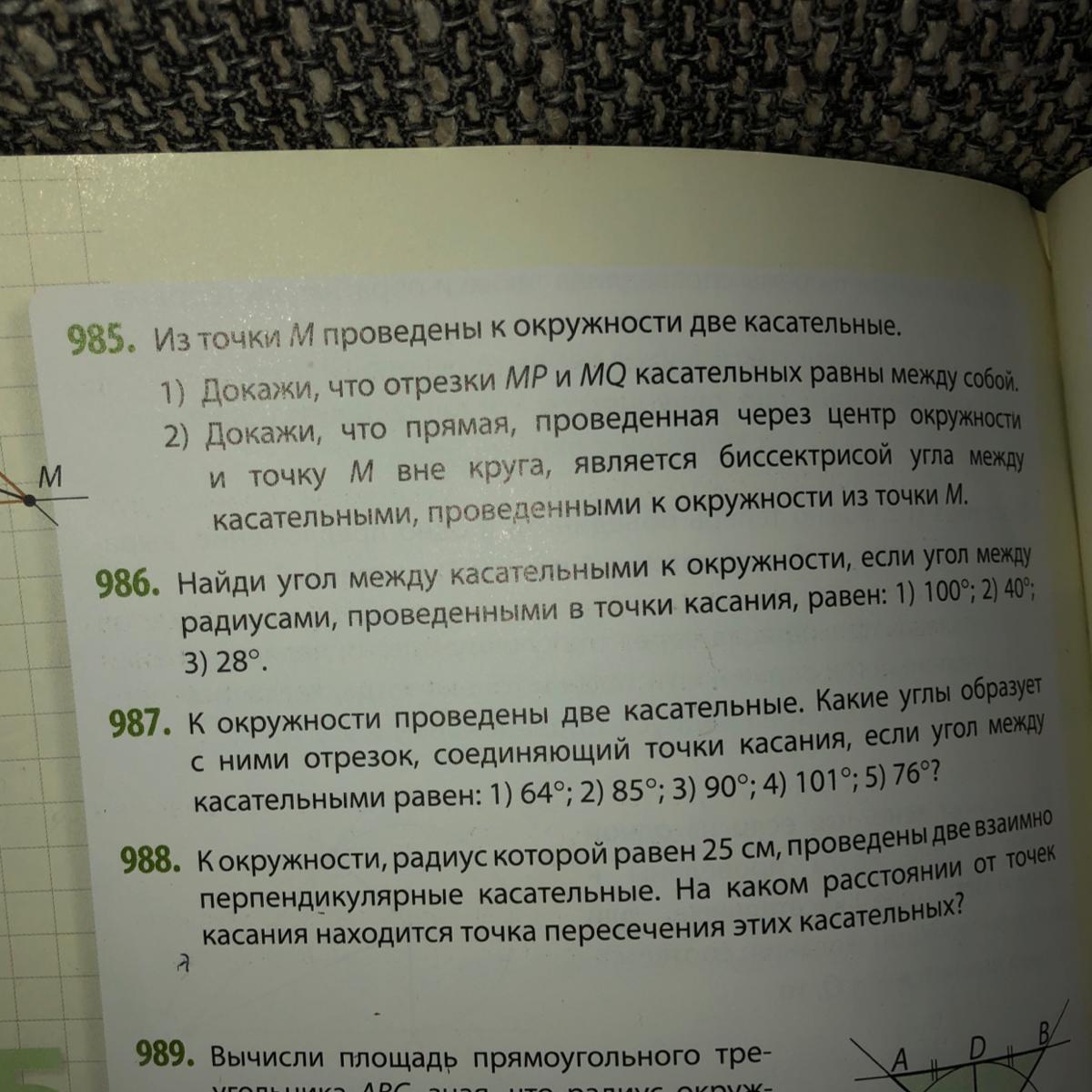 Так как радиус , проведенный в точку касания , перпендикулярен касательной , то угол между касательной равен