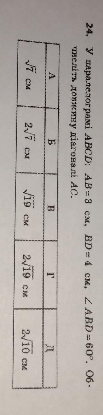 AO = √7 см; Диагональ AC = 2√7 см. Ответ Б).
