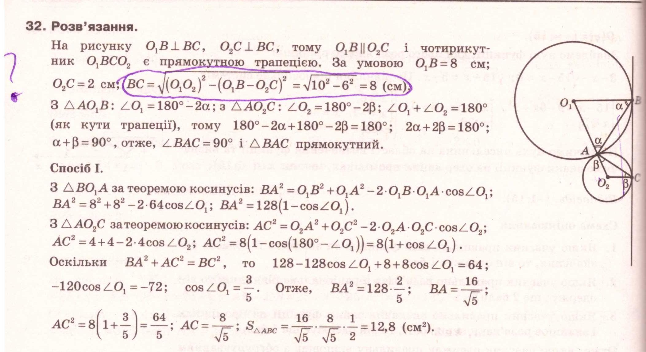 S△ABC =(R+r)√(Rr)/2 *4Rr/(R+r)^2 =2Rr√(Rr)/(R+r) =2*16*4/10 =12,8
