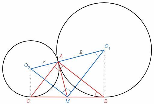 △ABC~△MO1O2 (по двум углам)