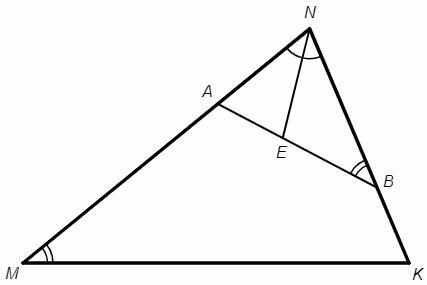 На сторонах MN и NK ∆ MNK взяты точки A и B соответственно так, что угол ABN=углу M. Отрезок NE является биссектрисой углу ANB, AE:EB=2:3. Найти отношения NK к MN.