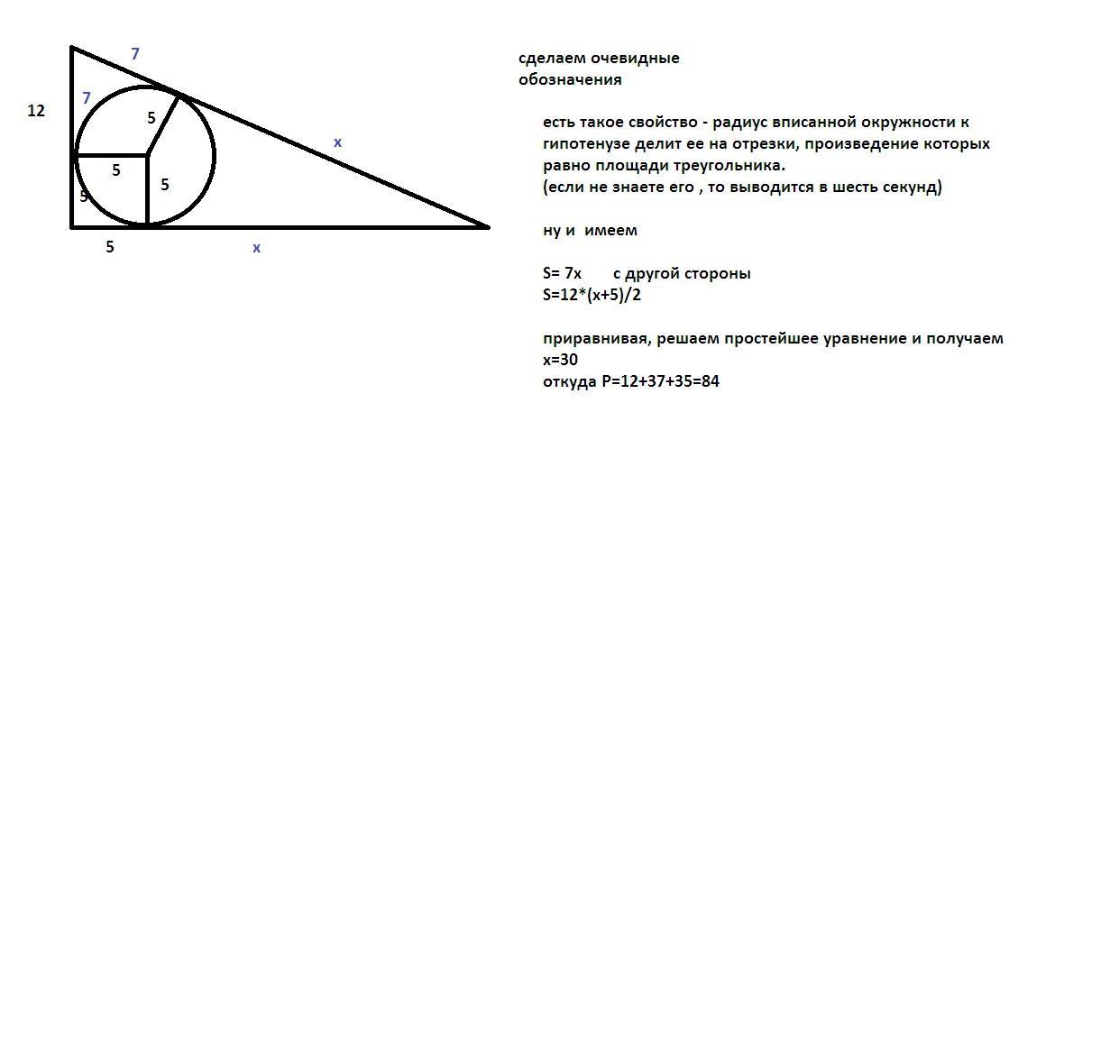 один из катетов равен 12 см. Найдите периметр треугольника. НЕ ИСПОЛЬЗОВАТЬ ТЕОРЕМУ ПИФАГОРА