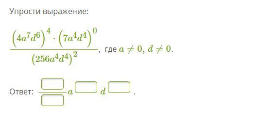 Объяснение: =(4^4·a^28·d^24· 1) / (4^8·a^8·d^8)=a^20·d^16 /4^4=