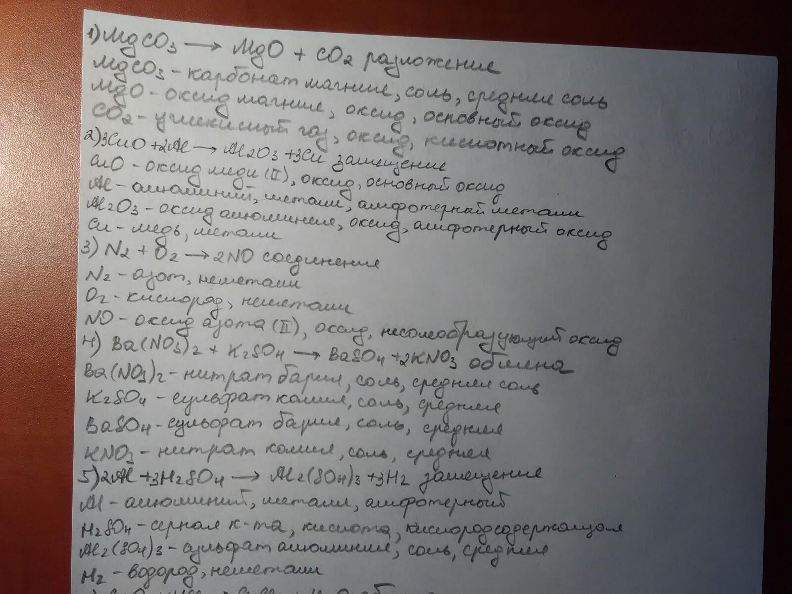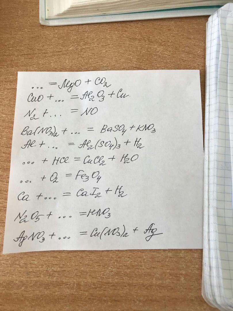 Вставить пропущенное вещество, указать тип реакции, назвать каждое вещество, указать класс и подкласс соединения