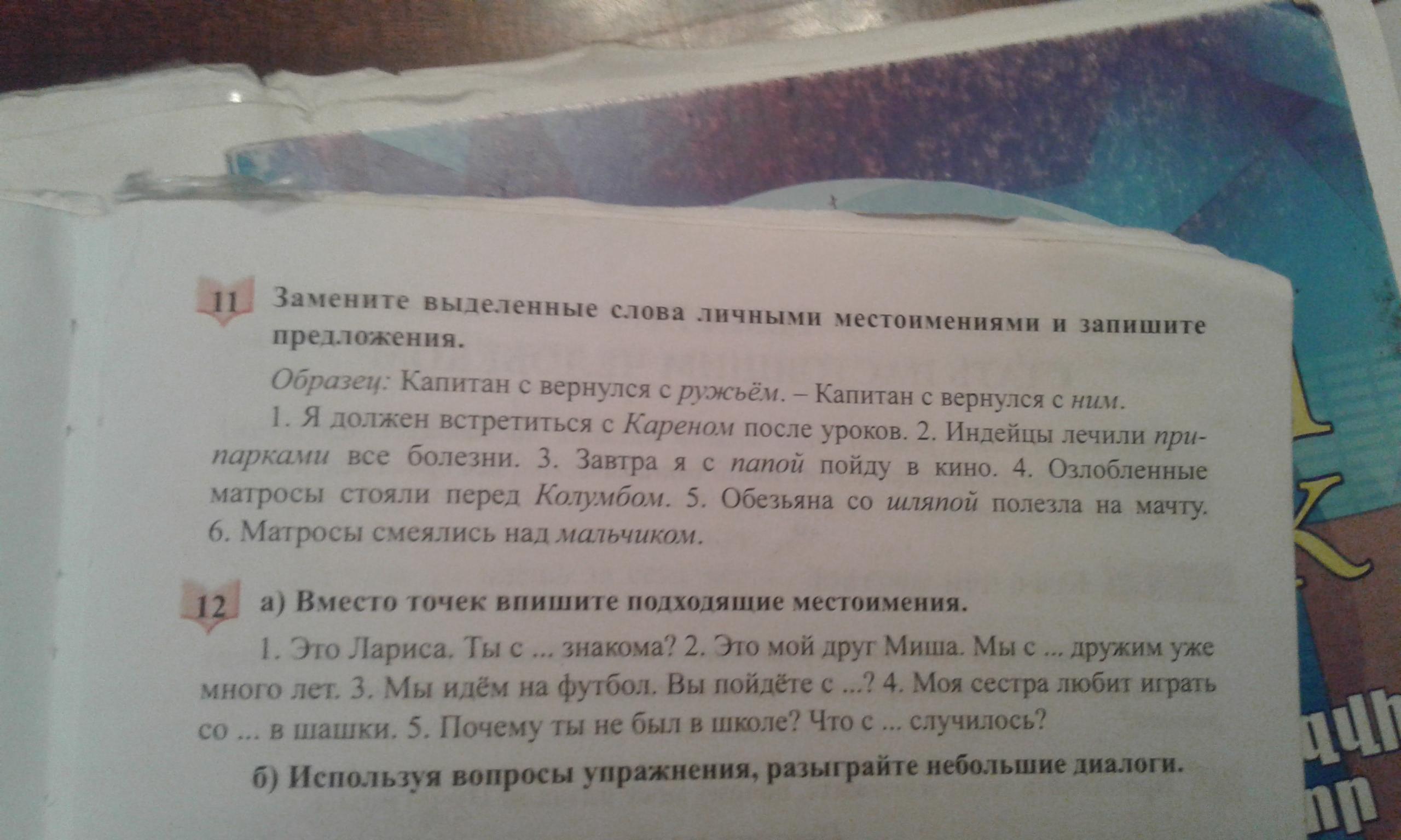 1)Я должен встретиться с ним после уроков. 2)Индейцы лечили ими все болезни. 3)Завтра я с ним пойду в кино. 4)Озлобленные матросы стояли перед ним. 5)Обезьяна с ней полезла на мачту. 6)Матросы смеялись над ним.