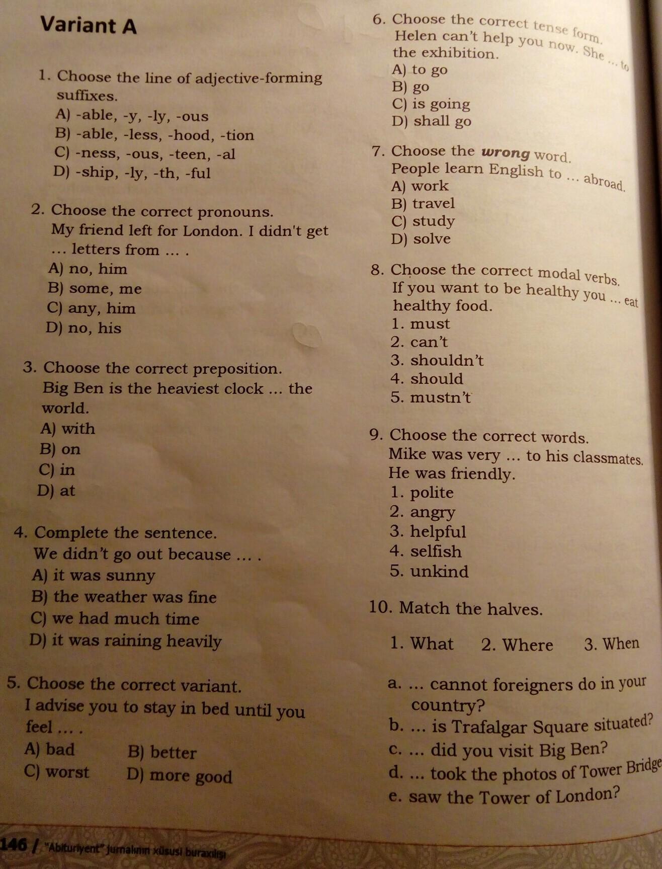 10. A) what b) when c) when D) where