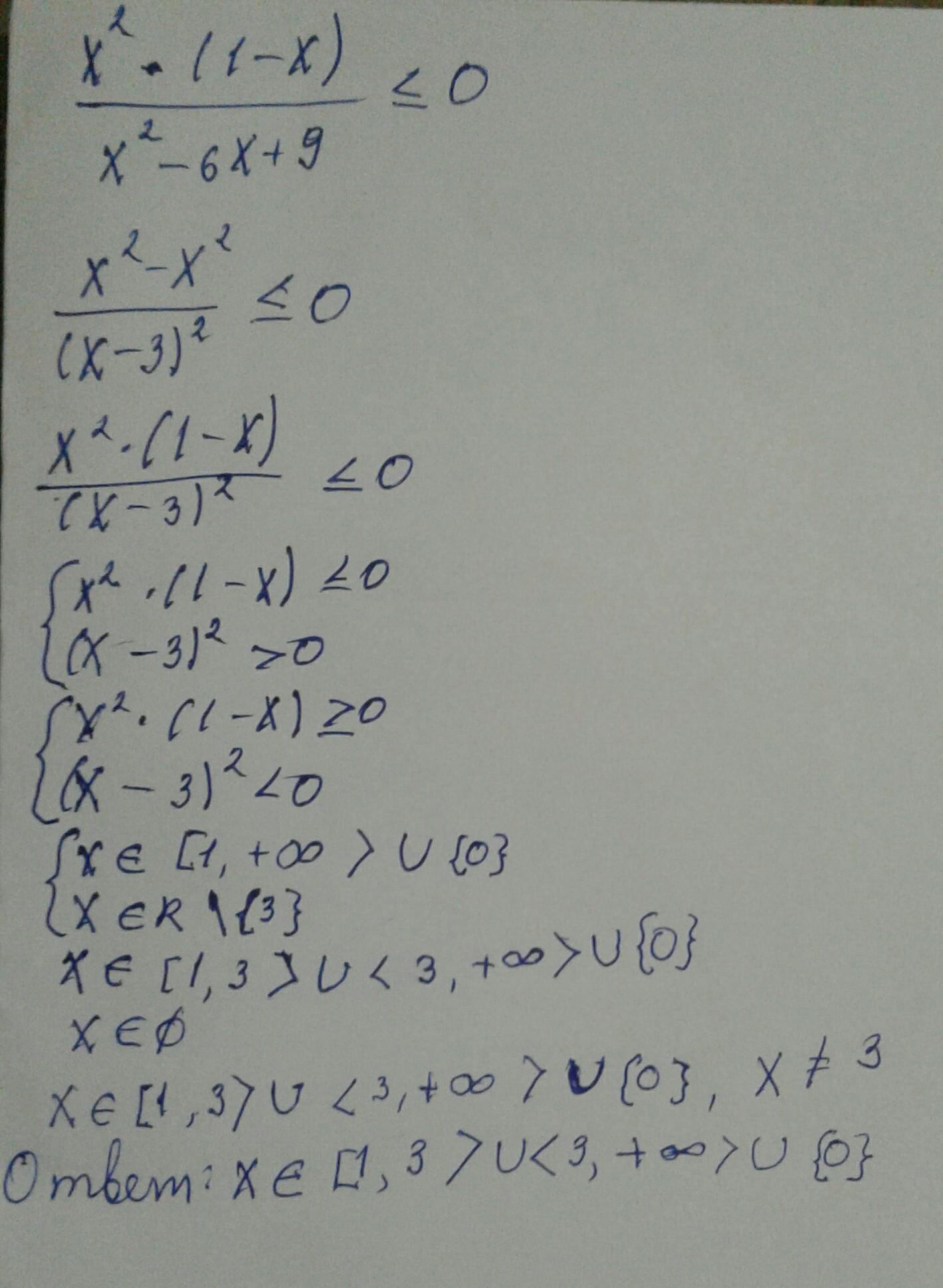 Ответ: [1,3)U(3,+бесконечность)U (0)