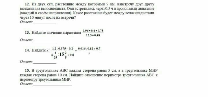 12. скорость сближения (и удаления) V1+V2= 9/0.5=18км/ч, тогда s=18*1/6=3км