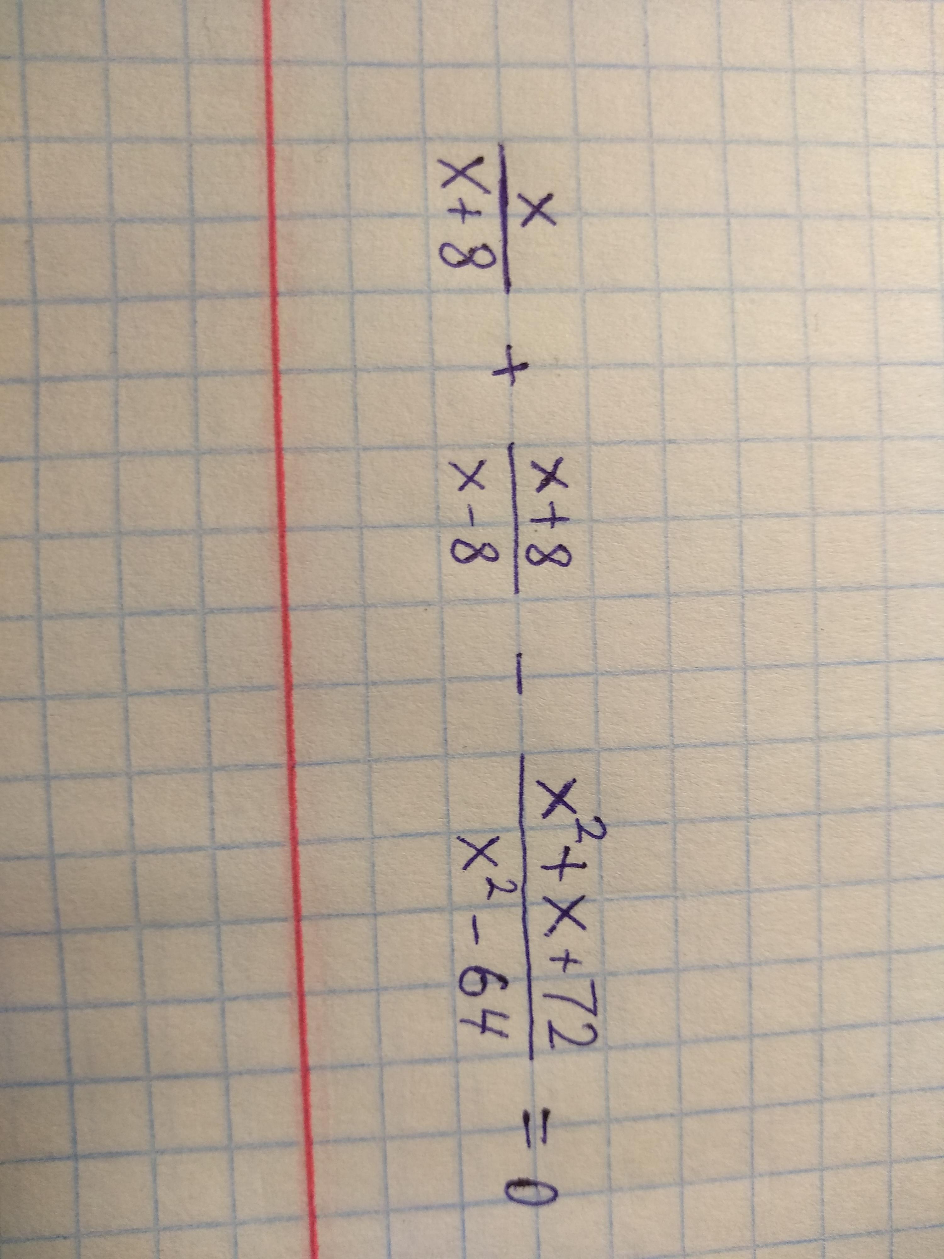 x/(x + 8) + (x + 8)/(x - 8) - (x² + x + 72)/((x - 8)(x + 8)) = 0|·(x - 8)(x + 8);
