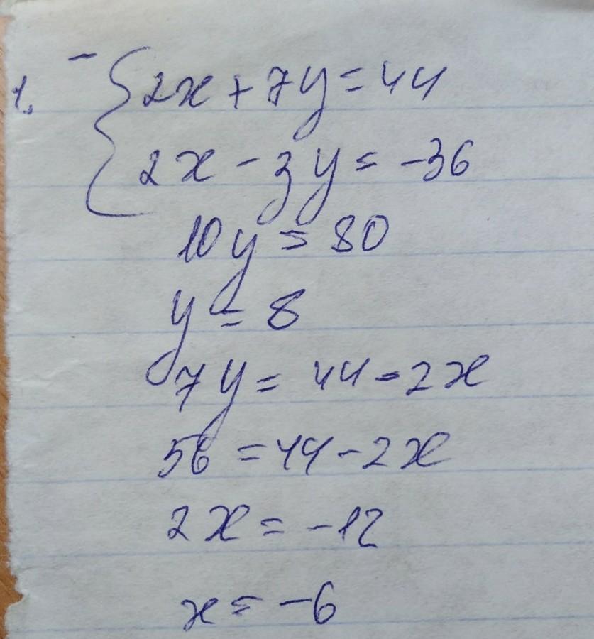 1) 2x + 7y - 44 = 0,