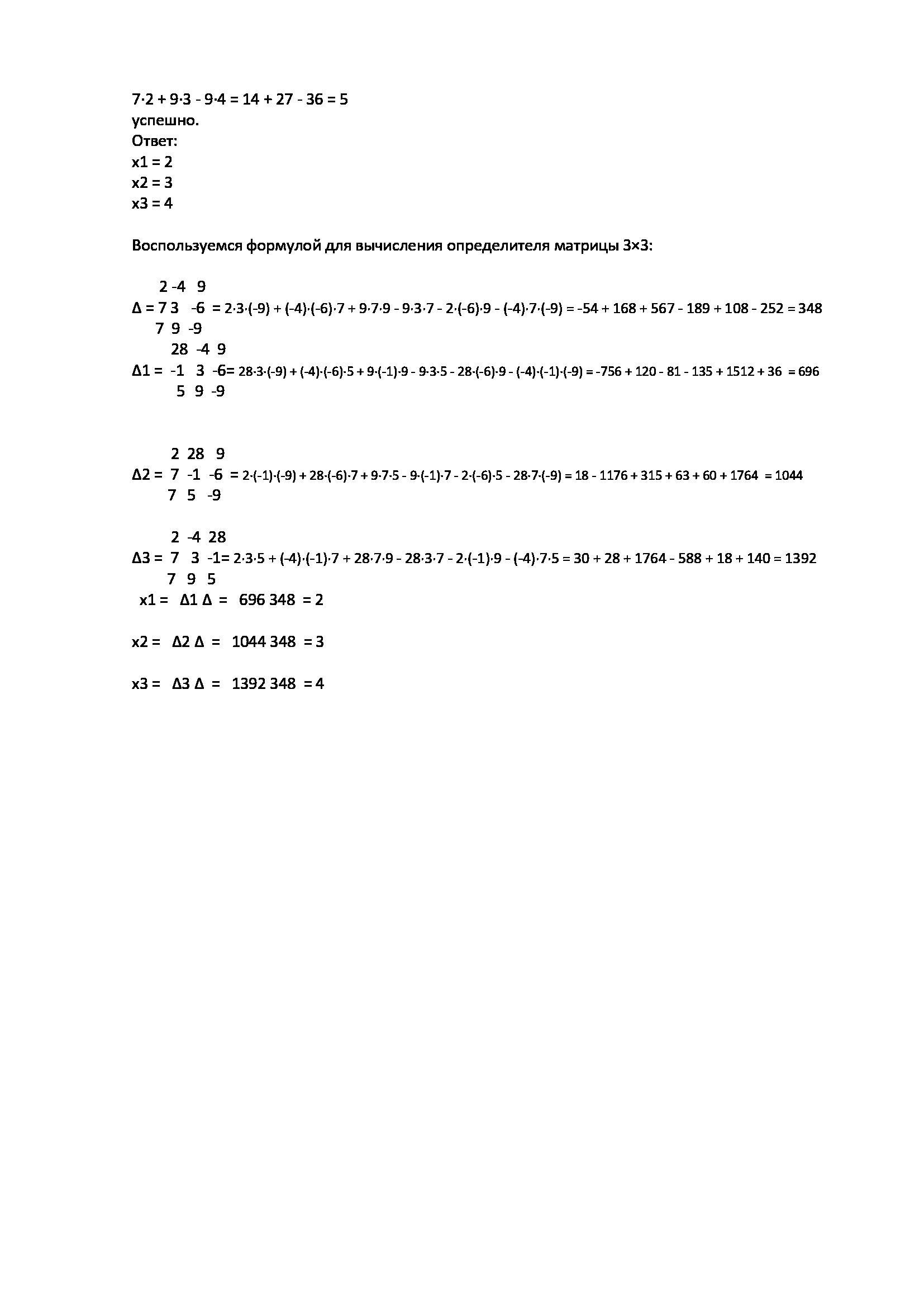 ∆3 = 7 3 -1= 2•3•5 + (-4)•(-1)•7 + 28•7•9 - 28•3•7 - 2•(-1)•9 - (-4)•7•5 = 1392