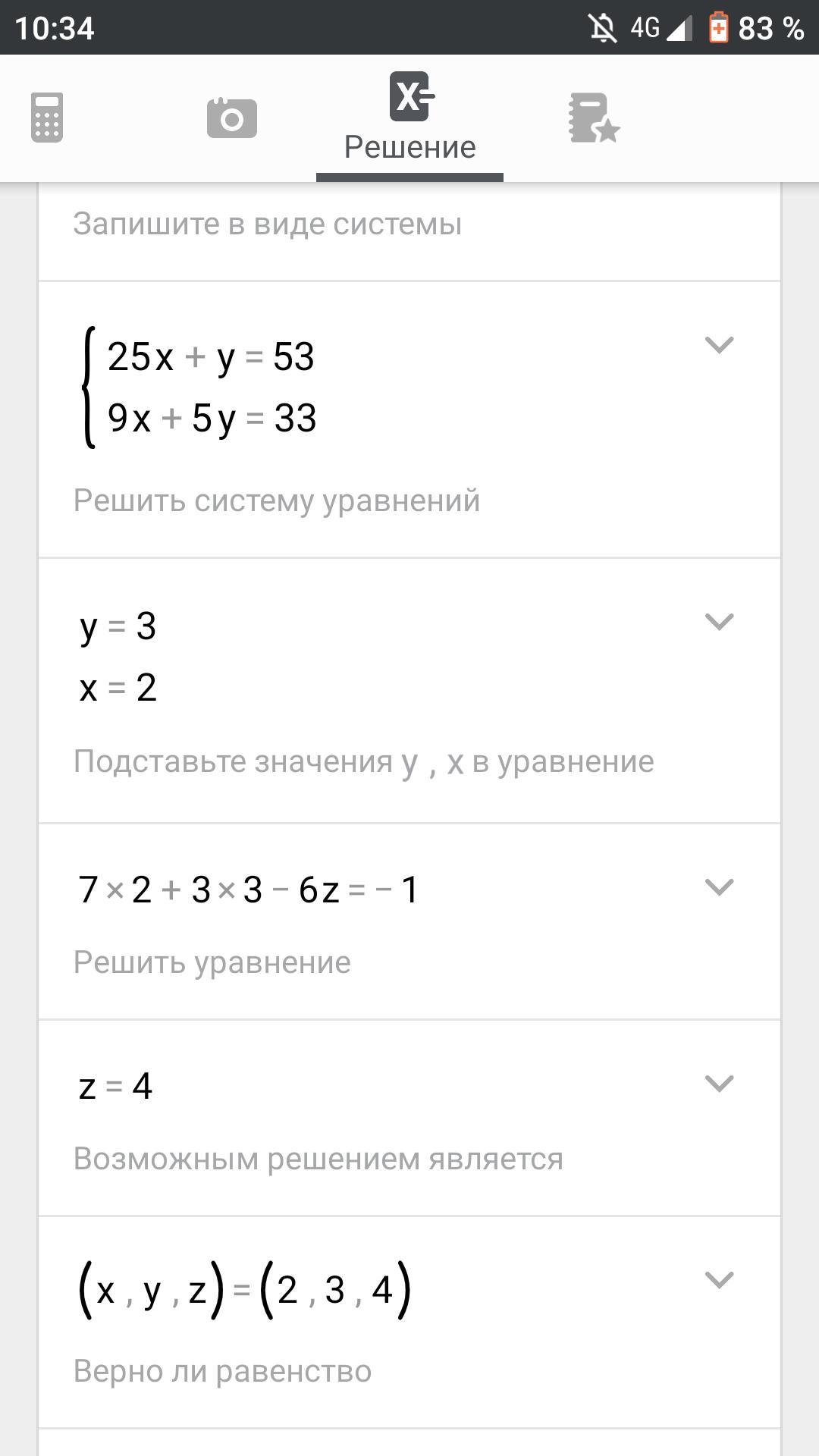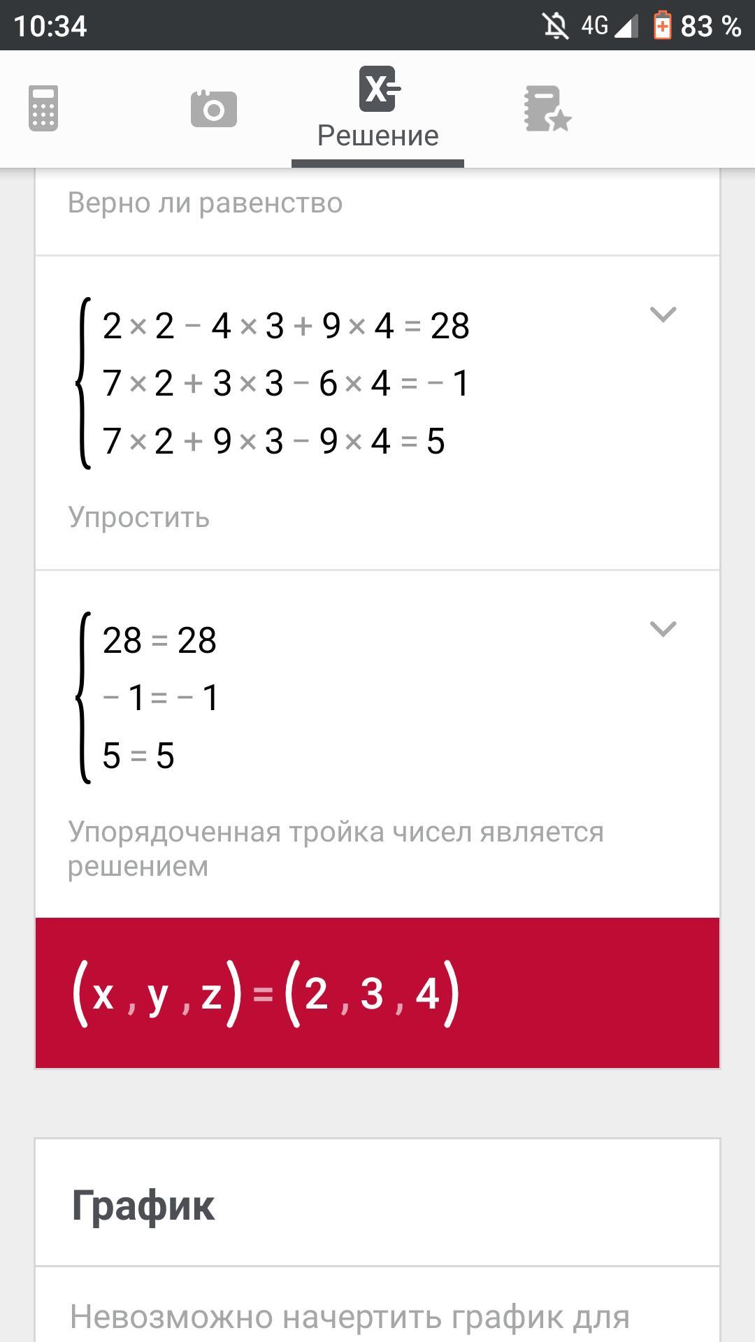 Сделаем проверку. Подставим полученное решение в уравнения из системы и выполним вычисления: